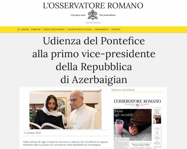 1xeber.media » Baş manşet » Birinci xanımın Roma Papası ilə görüşünü işıqlandırdılar
