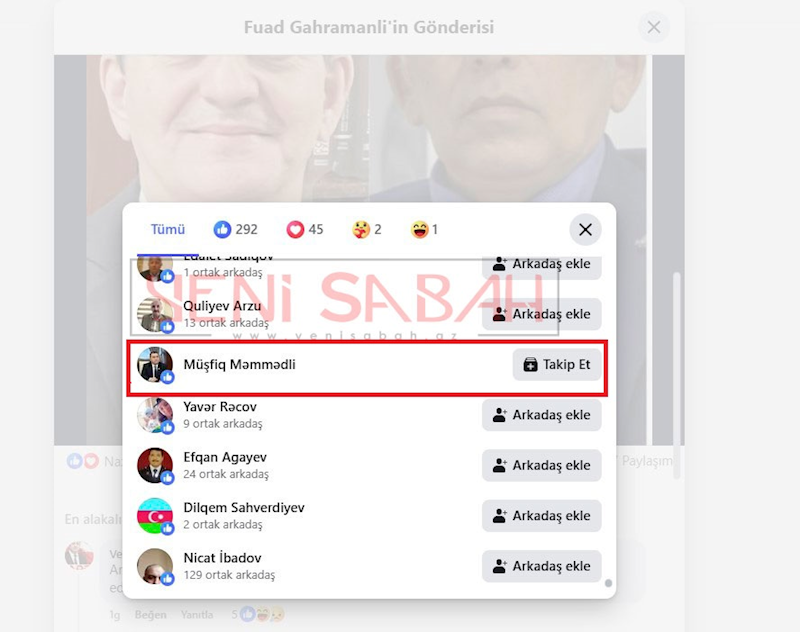 Qeyd edək ki, AXCP sədrinin müavini Fuad Qəhrəmanlı “Facebook” səhifəsində jurnalist Rahim Hacıyevin partiya sədri Əli Kərimli barədə yazdığı qısa məqaləni paylaşıb. Diqqət çəkən məqam isə paylaşımın özü deyil, bu addıma Yeni Azərbaycan Partiyasının üzvü, 55 saylı Siyəzən-Quba-Xızı seçki dairəsindən deputat seçilmiş Müşfiq Məmmədlinin reaksiyası olub. Belə ki, o, F.Qəhrəmanlının paylaşımını bəyənib.