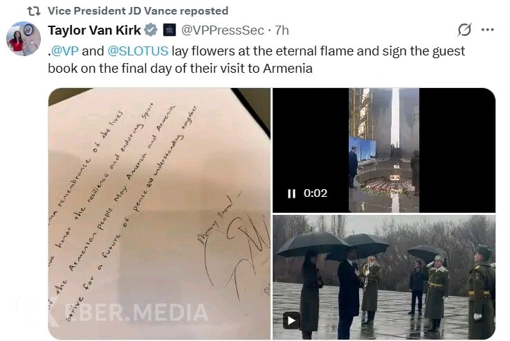 Bunun ardınca isə Uensin mətbuat katibinin səhifəsindən yeni bir paylaşım edilib. Həmin postda vitse-prezidentin memorialı ziyarət etdiyini əks etdirən görüntülər yer alsa da, “soyqırımı” sözünə rast gəlinməyib.