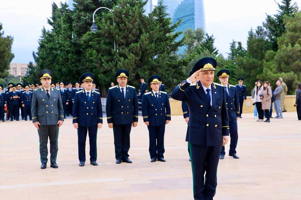 Sonra Şəhidlər xiyabanına gələn prokurorluğun kollektivi Azərbaycanın müstəqilliyi və azadlığı uğrunda şəhid olmuş qəhrəman Vətən övladlarının xatirəsinə dərin ehtiramlarını bildirib, “Əbədi məşəl” abidəsini ziyarət ediblər.
