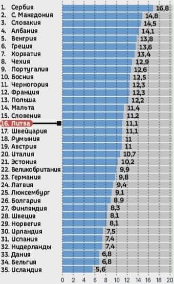 Avropa ölkələrinə baxsaq yenə ən sondayıq: Avropada ən pis göstərici Serbiyadadır – 16,8 il, ən yaxşı vəziyyət isə İslandiyadadır – cəmi, 5,6 il.