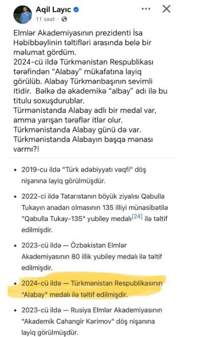 1xeber.media » Xəbərlər » Türkmənistanda AMEA prezidentinə itlərə verilən “Alabay” medalı verilibmiş