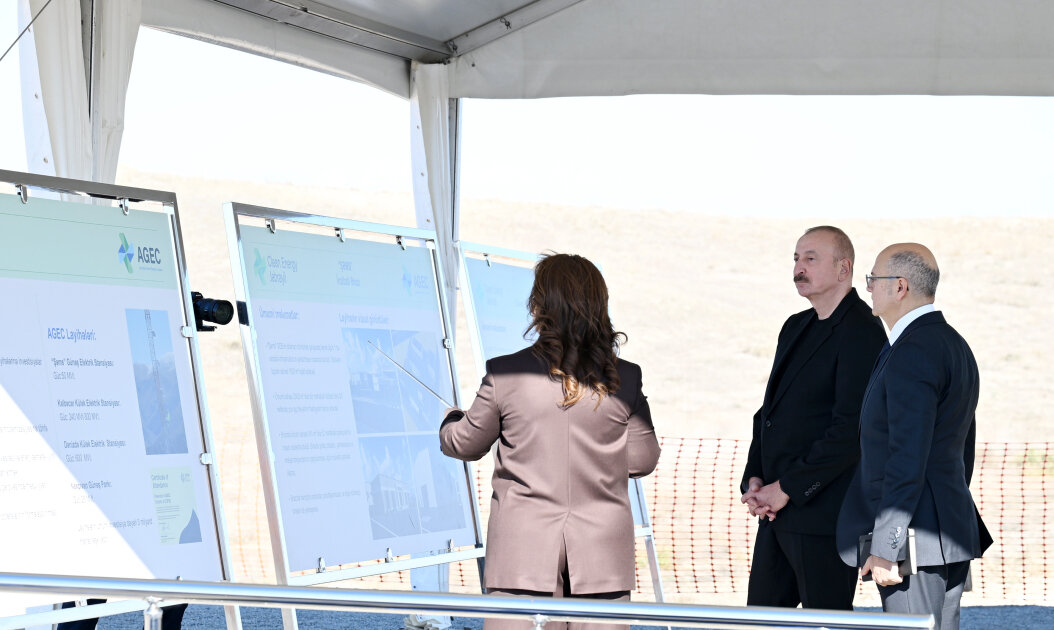 Prezident İlham Əliyev “Şəms” Günəş Elektrik Stansiyasının təməlini qoydu, daha sonra “Üfüq” Günəş Elektrik Stansiyasının təməlqoyma mərasimində iştirak etdi.