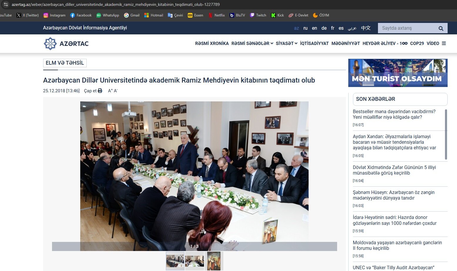 1xeber.media xəbər verir ki, həmin çıxışlardan biri 2018-ci ildə Azərbaycan Dillər Universitetində baş tutan təqdimat mərasiminə aiddir. Universitetin rektoru, akademik Kamal Abdulla Ramiz Mehdiyevin kitabının təqdimatında keçmiş PA rəhbərini ” filosof”, “müdrik dövlət xadimi” kimi xeyli tərifləyib: