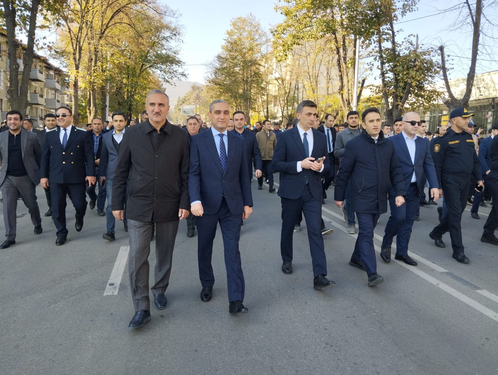 1xeber.media xəbər verir ki,tədbirdə üçrəngli bayraqlar dalğalanıb, “Qarabağ Azərbaycandır!” şüarları səsləndirilib. Zəfər Günü münasibətilə keçirilən yürüş bir daha Azərbaycan xalqının birliyini, ordumuzun gücünü və torpaqlarımızın azadlığı uğrunda qazanılan tarixi qələbənin əzəmətini nümayiş etdirib.