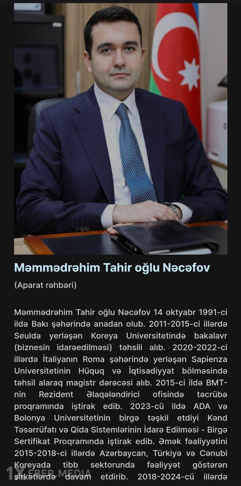 1xeber.media xəbər verir ki,Globalinfo.az-a daxil olan məlumata görə, bu vəzifəyə hələ ötən il oktyabrın 24-də Məmmədrəhim Tahir oğlu Nəcəfov təyin olunub.