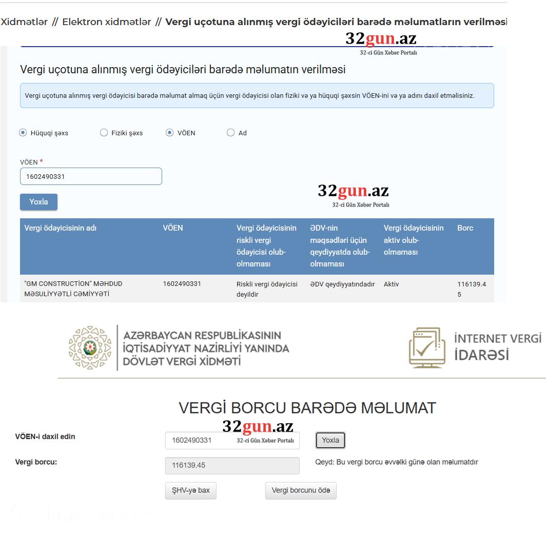 Sənədlər şirkətlə bağlı diqqətçəkən başqa bir məqamı da ortaya çıxarıb. Belə ki, tenderin qalibi olan “GM Construction” MMC-nin dövlət büdcəsinə 116.139,45 AZN məbləğində vergi borcu mövcuddur.