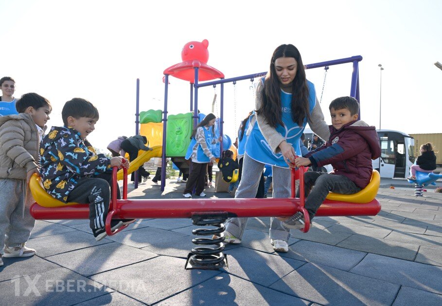Daha sonra Leyla Əliyeva parkdakı uşaqlara müxtəlif oyuncaqlar hədiyyə edib, onlarla birlikdə xatirə şəkilləri çəkdirib.