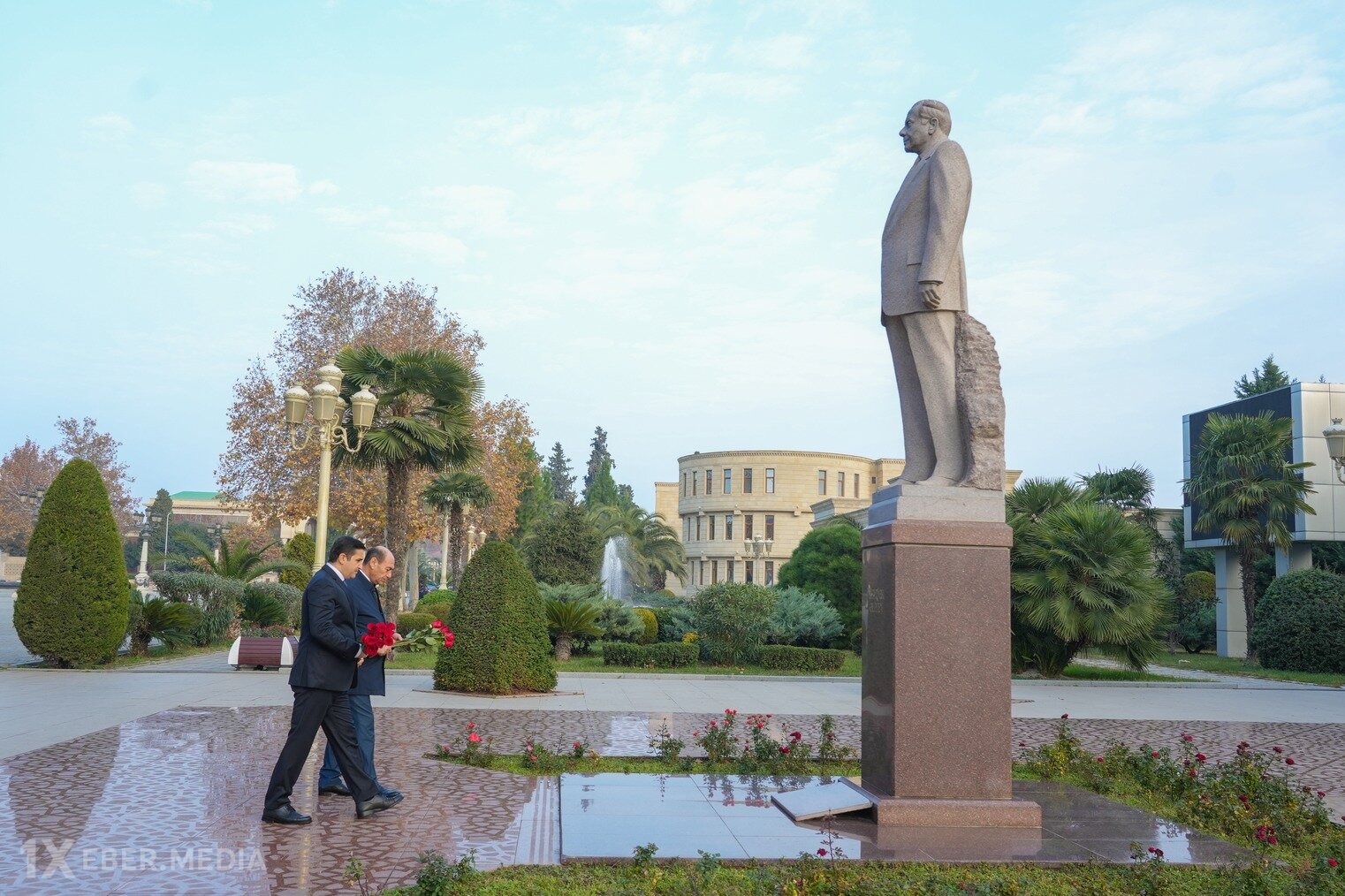 1xeber.media xəbər verir ki, qəbuldan əvvəl nazir Ümummilli Lider Heydər Əliyevin abidəsini ziyarət edib və önünə gül dəstəsi qoyub.