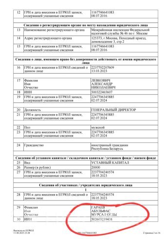 - 17 aprel 2012-ci ildə Moskvada fərdi sahibkar kimi qeydiyyata alınıb ( "qeyri-ixtisaslaşmış mağazalarda pərakəndə ticarət");