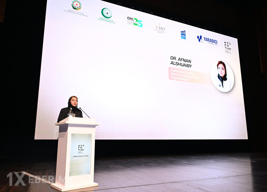 Açılış nitqi ilə çıxış edən WDO-nun baş direktoru Afnan Al-Shuaibi forum təşkilatçılarına təşəkkürünü bildirib. Qadınların bilikəsaslı cəmiyyətin formalaşmasında mühüm rol oynadığına diqqət çəkib: “Bu, inkişafın və tərəqqinin göstəricisidir. Bizim əsas missiyamız qadınlara öz potensiallarını kəşf etməyə və reallaşdırmağa imkan yaratmaqdır. Qadınlar həm sahibkar, həm də mədəni innovator kimi cəmiyyətin inkişafına böyük töhfə verirlər. Biz qadınların irəliləməsi, öz işlərini tanıtması və yaradıcı layihələrini həyata keçirməsi üçün bütün imkanlarımızı səfərbər etməyə hazırıq”.