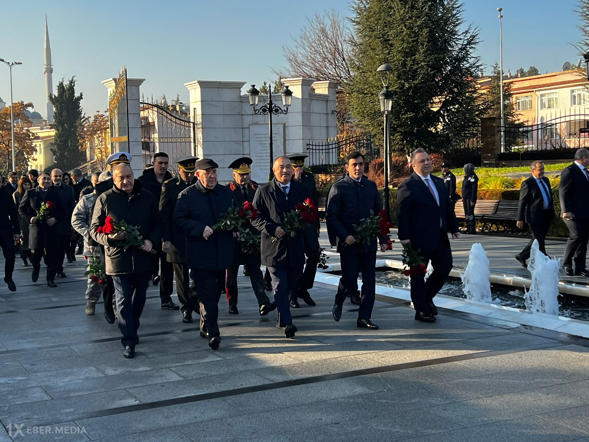 1xeber.media xəbər verir ki, Ümummilli Liderin xatirəsi bir dəqiqəlik sükutla yad edilib, abidə önünə əklil və gül dəstəsi qoyulub.