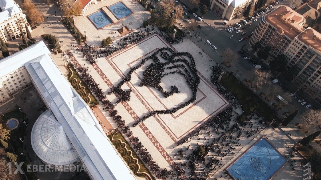 məqsədilə tələbə gənclərdən ibarət “Dəmir yumruq və Sülh göyərçini” kompozisiyası yaradılıb.