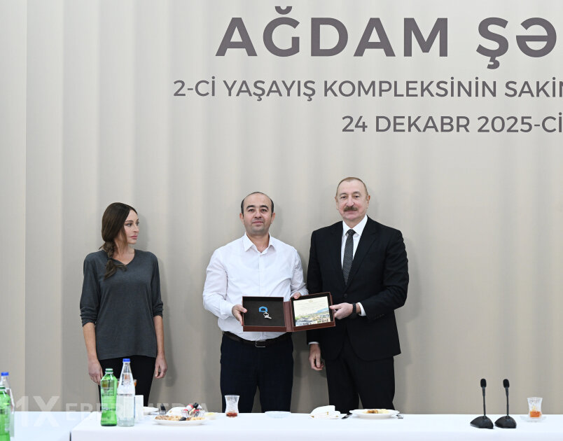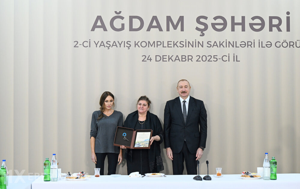 Azərbaycan Prezidenti İlham Əliyev və birinci xanım Mehriban Əliyeva bu gün Ağdam şəhərində 2-ci yaşayış kompleksinin açılışında iştirak edib və buraya köçən sakinlərlə görüşüblər.