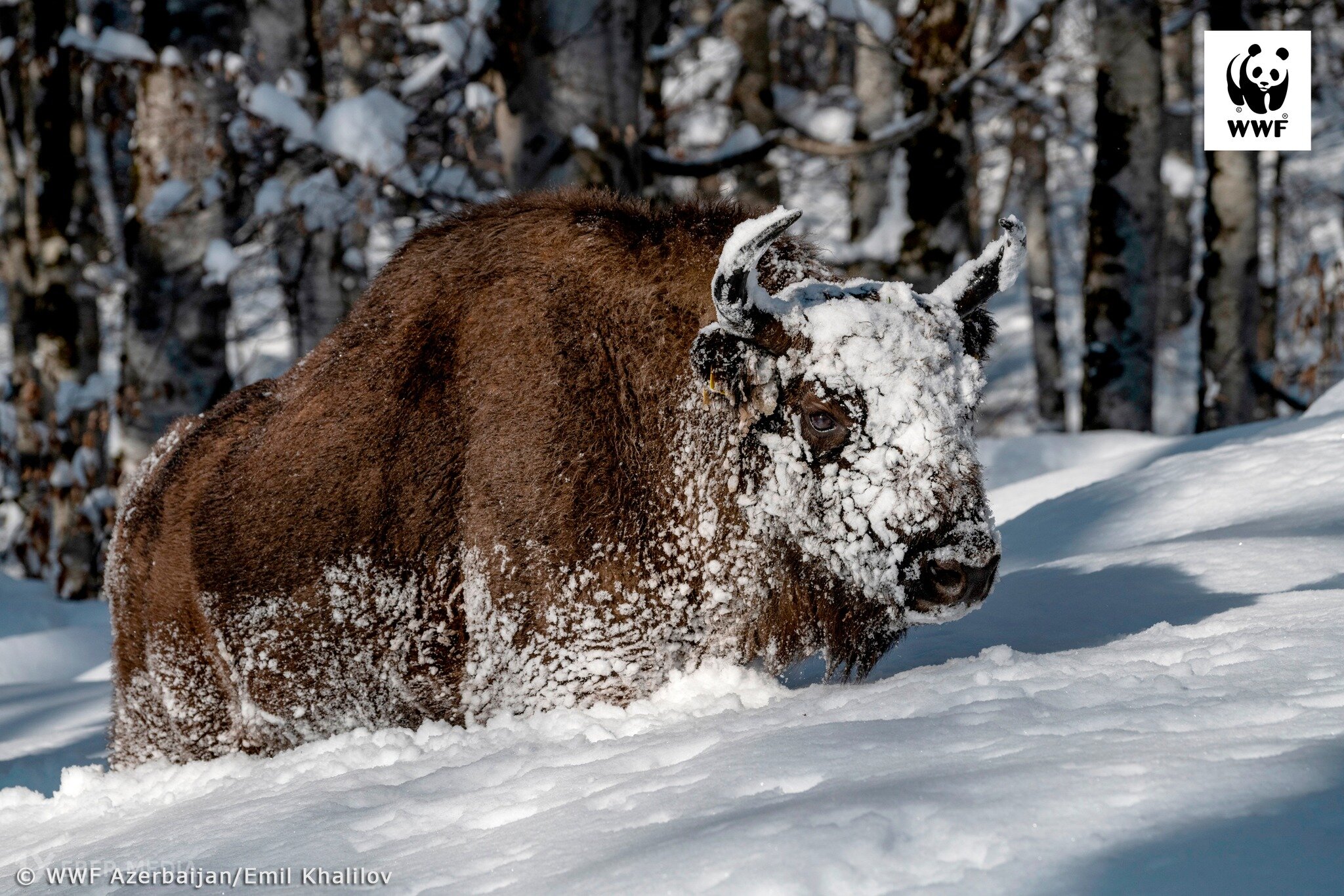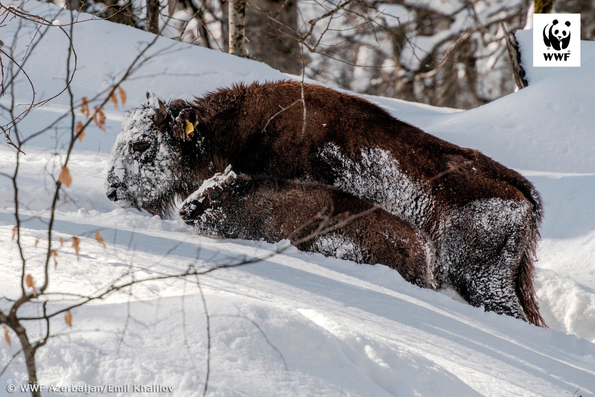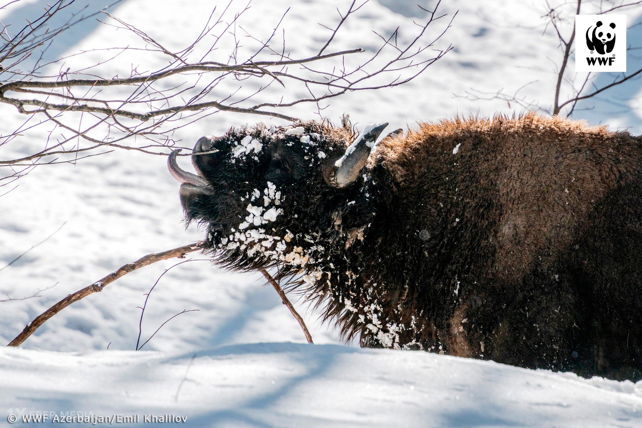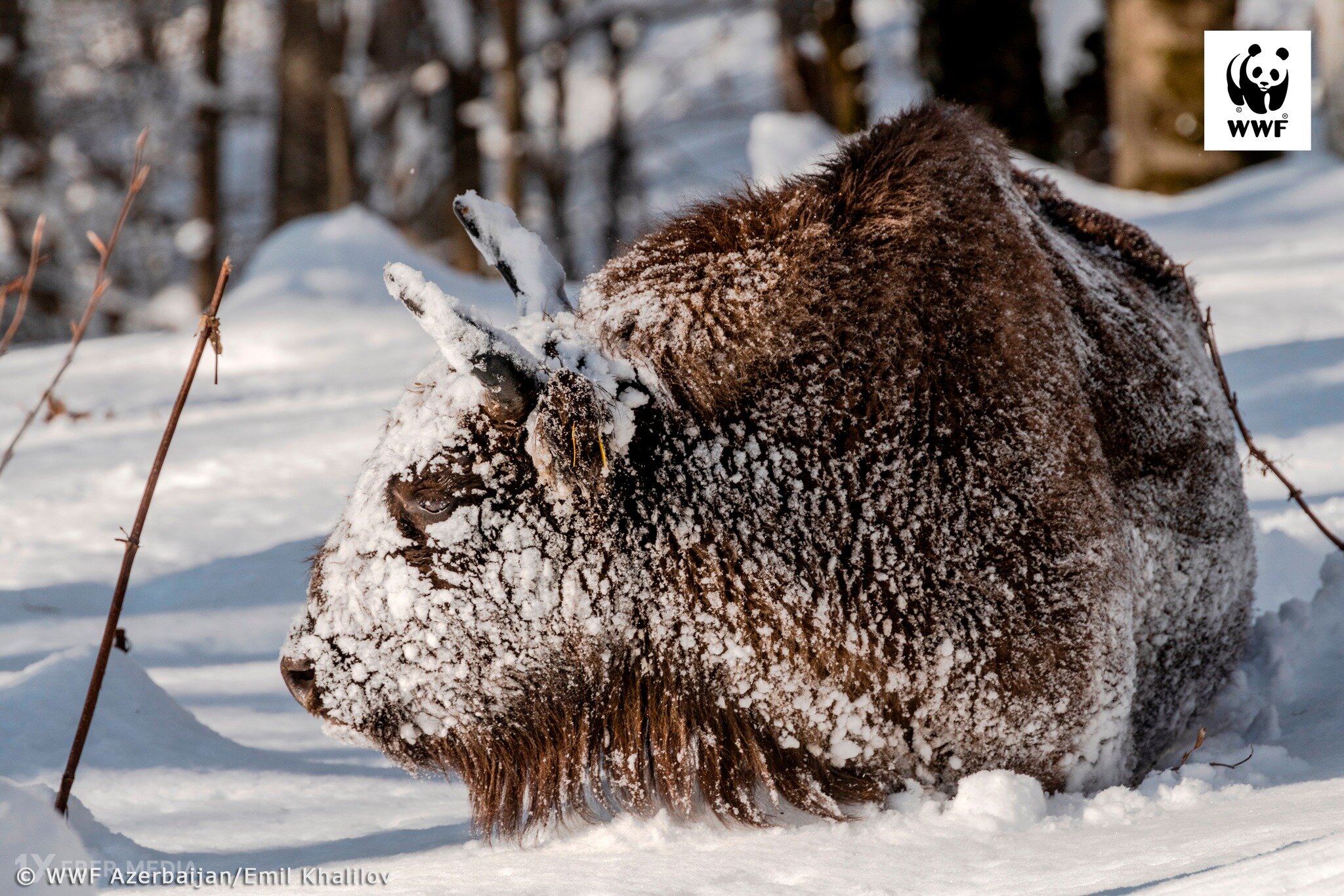 Fotoqraf Emil Xəlilov tərəfindən lentə alınan kadrlarda vəhşi təbiətin möhtəşəmliyi və zubrların qar örtüyü altında həyatını davam etdirdiyi müşahidə edilir.