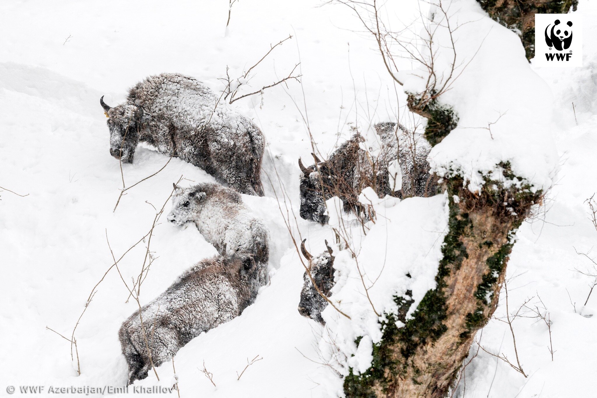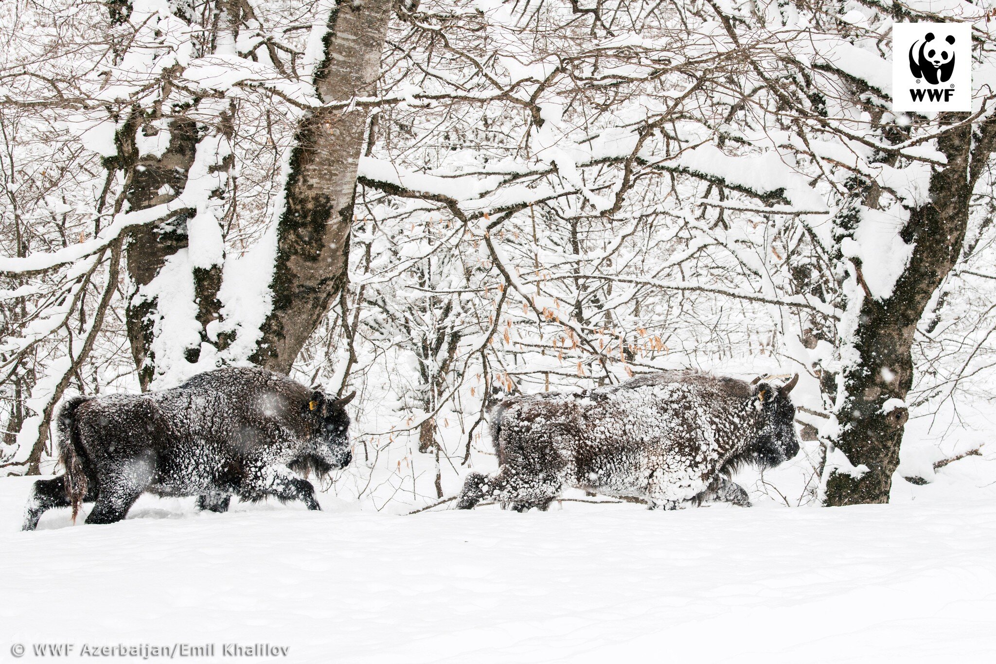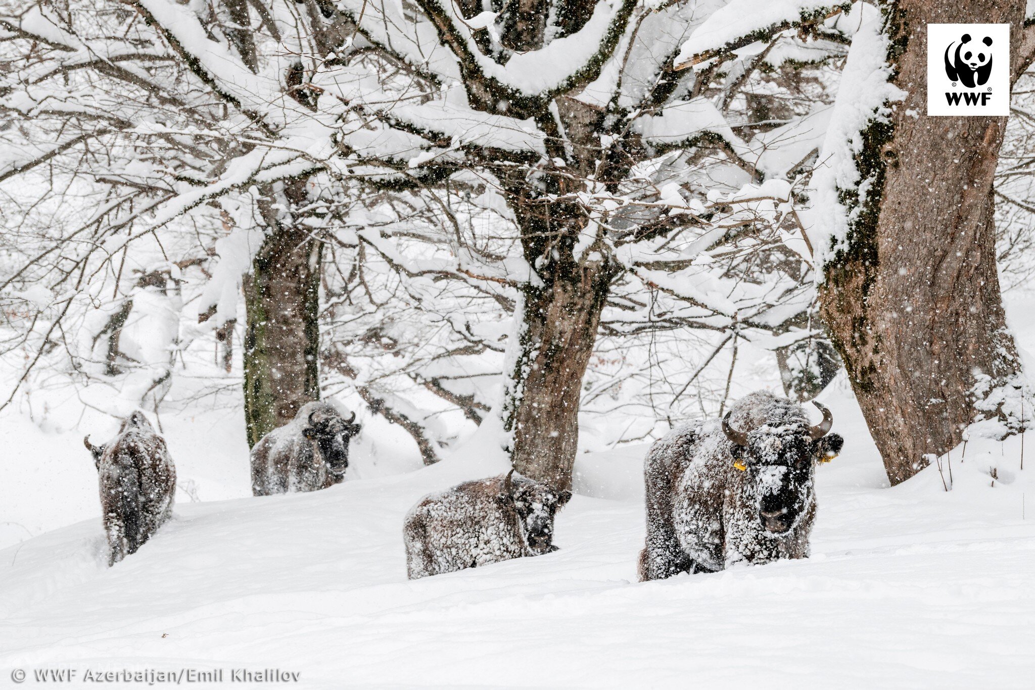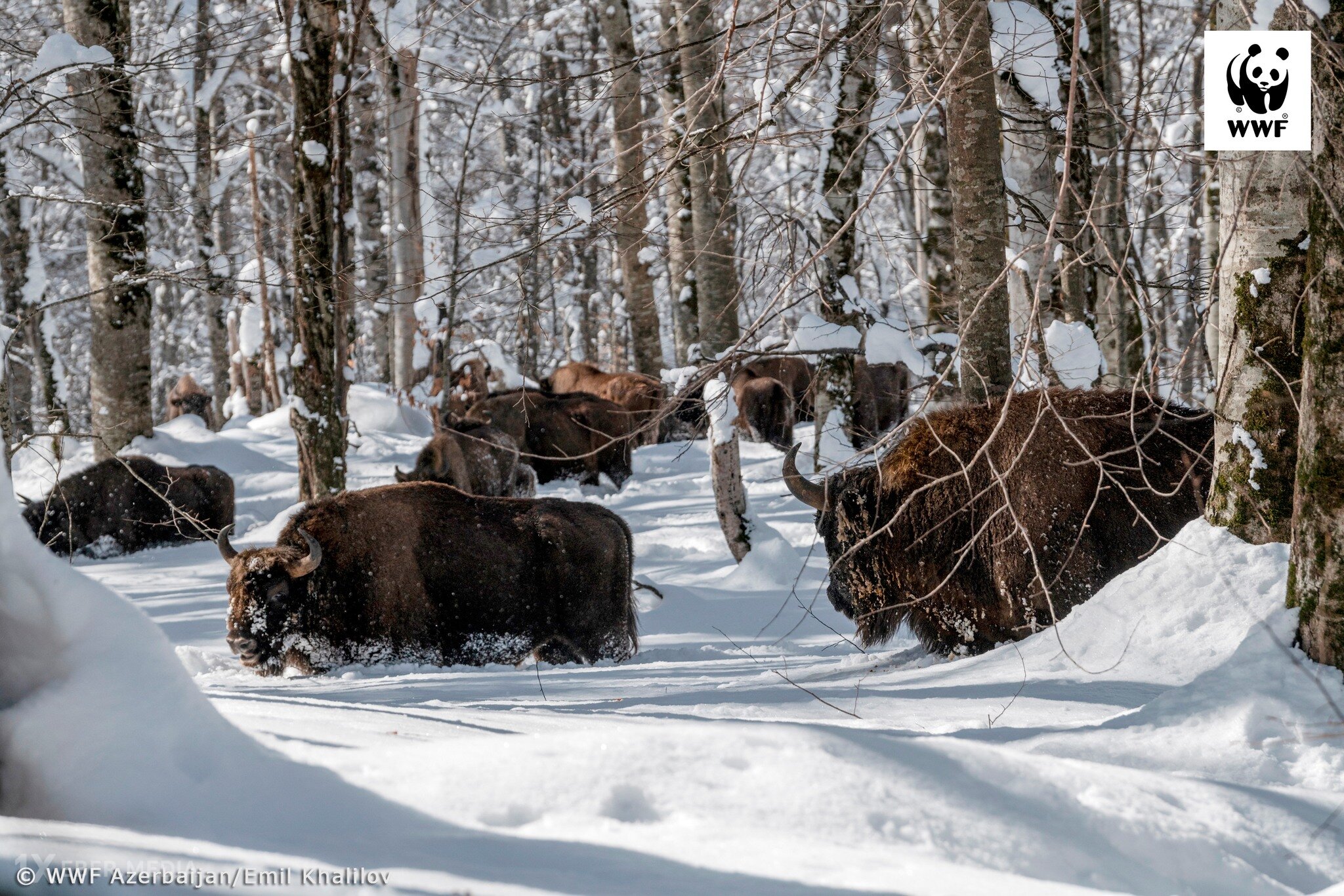 Fotoqraf Emil Xəlilov tərəfindən lentə alınan kadrlarda vəhşi təbiətin möhtəşəmliyi və zubrların qar örtüyü altında həyatını davam etdirdiyi müşahidə edilir.