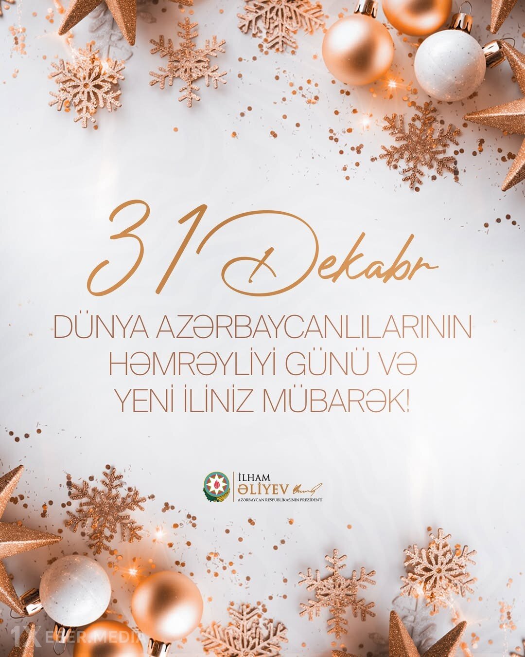 Prezident İlham Əliyev 31 dekabr – Dünya Azərbaycanlılarının Həmrəyliyi Günü və Yeni illə bağlı paylaşım edib.