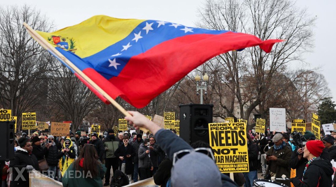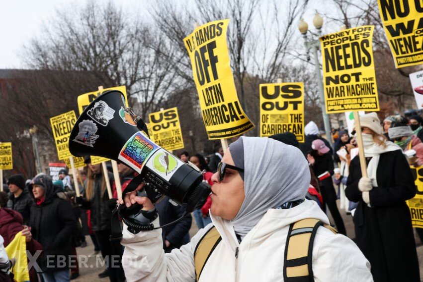 ABŞ-nin Venesuelaya hərbi müdaxiləsini pisləmək məqsədilə çoxsaylı etirazçı Ağ Ev qarşısında toplaşıb.