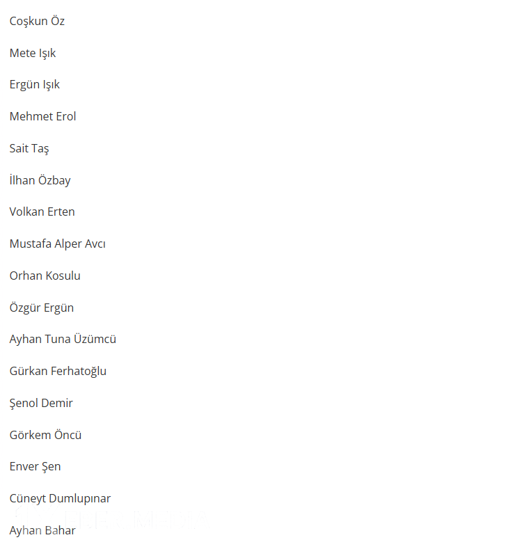 Siyahıda məşqçilər arasında tanınmışlardan Gökhan Ünal, Sercan Yıldırım və Cüneyt Dumlıpınarın adı yer alıb.