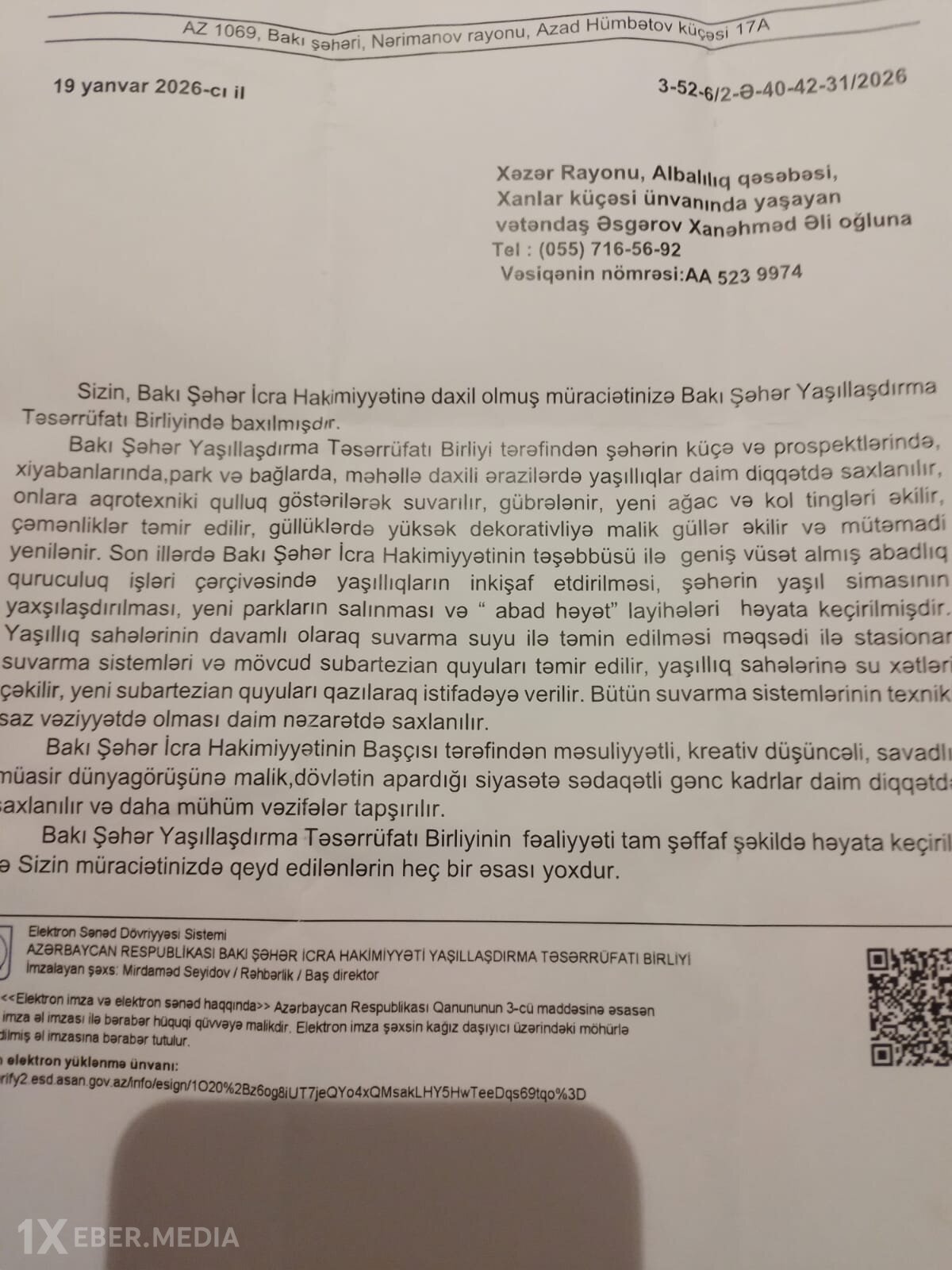 Məsələ ilə bağlı Bakı şəhər İcra Hakimiyyətinin Mətbuat Xidməti ilə dəfələrlə əlaqə saxlamağa çalışsaq da cəhdlərimiz boşa çıxdı, sorğularımız cavabsız qaldı.