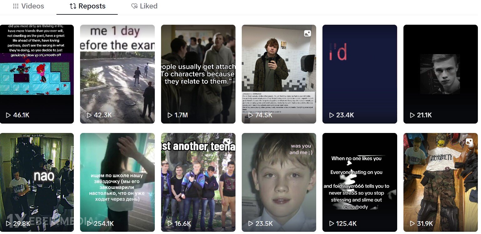 Sözügedən “TikTok” hesabındakı “repost”ların böyük əksəriyyəti 2018-ci ildə Krımda Kerç Kollecinə hücum edən Vladislav Roslyakovla bağlıdır.