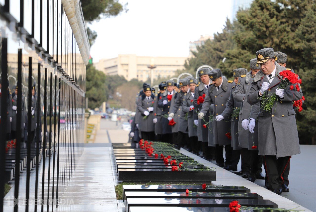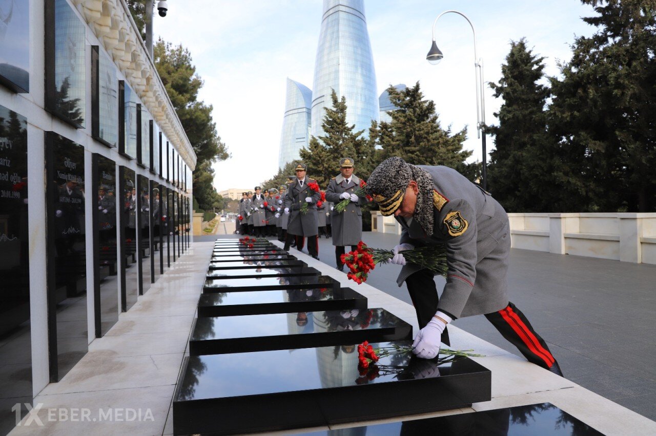 Daha sonra Şəhidlər xiyabanında Azərbaycanın müstəqilliyi və ərazi bütövlüyü uğrunda canlarından keçmiş Vətən övladlarının unudulmaz xatirəsi yad edilib, “Əbədi məşəl” abidə kompleksinin önünə əklil qoyulub.