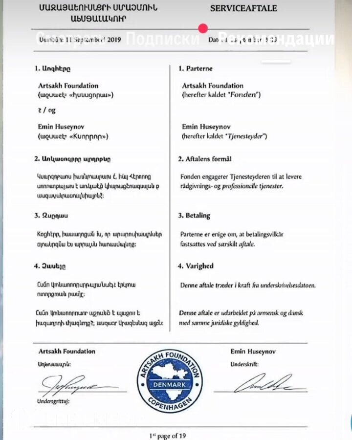 Özünü “hüquq müdafiəçisi” kimi təqdim edən bloger Mehman Hüseynovun qardaşı Emin Hüseynov ilə bağlı sensasion sənəd ortaya çıxıb. Sənədə əsasən, onun 11 sentyabr 2019-cu ildə xaricdə ermənilərlə yüksək məbləğli razılaşma imzaladığı qeyd olunur.