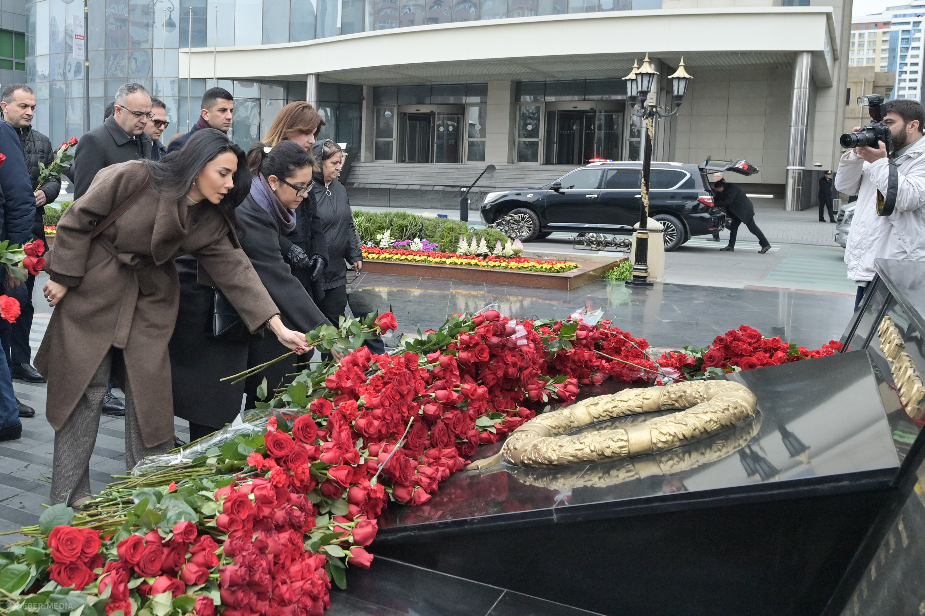 1xeber.media xəbər verir ki, Xocalı şəhidlərinin xatirəsinə ucaldılmış abidənin önünə güllər düzülüb.