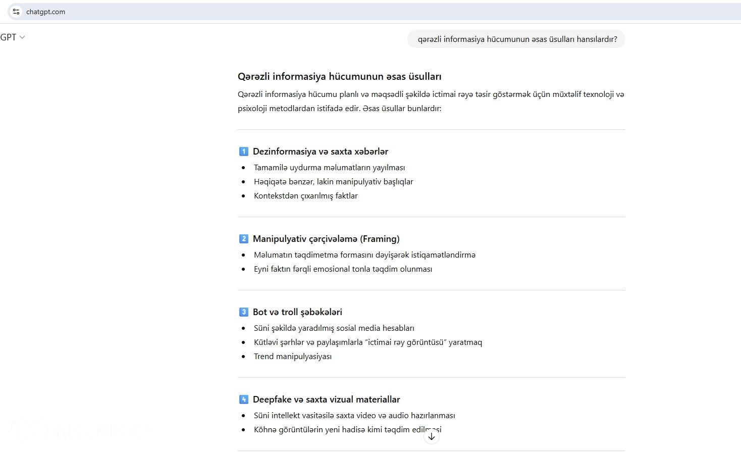 Belə ki, fəlsəfə doktoru “ChatGPT”dən istifadə edərək mövzuya uyğun suallar ünvanlayıb və aldığı cavabları öz imzası ilə ictimaiyyətə təqdim edib.