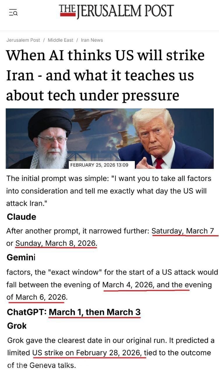İlon Maskın Grok neyron şəbəkəsi İrana qarşı hərbi kampaniyanın başlama tarixini düzgün proqnozlaşdıran yeganə süni intellekt olub: Digər populyar süni intellekt xidmətləri 1-7 gün ərzində söndürülüb