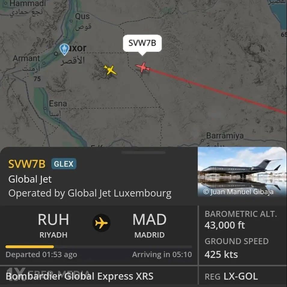 Bildirilir ki, superulduz ötən gün şəxsi təyyarəsi ilə paytaxt Ər-Riyaddan Madridə uçub.