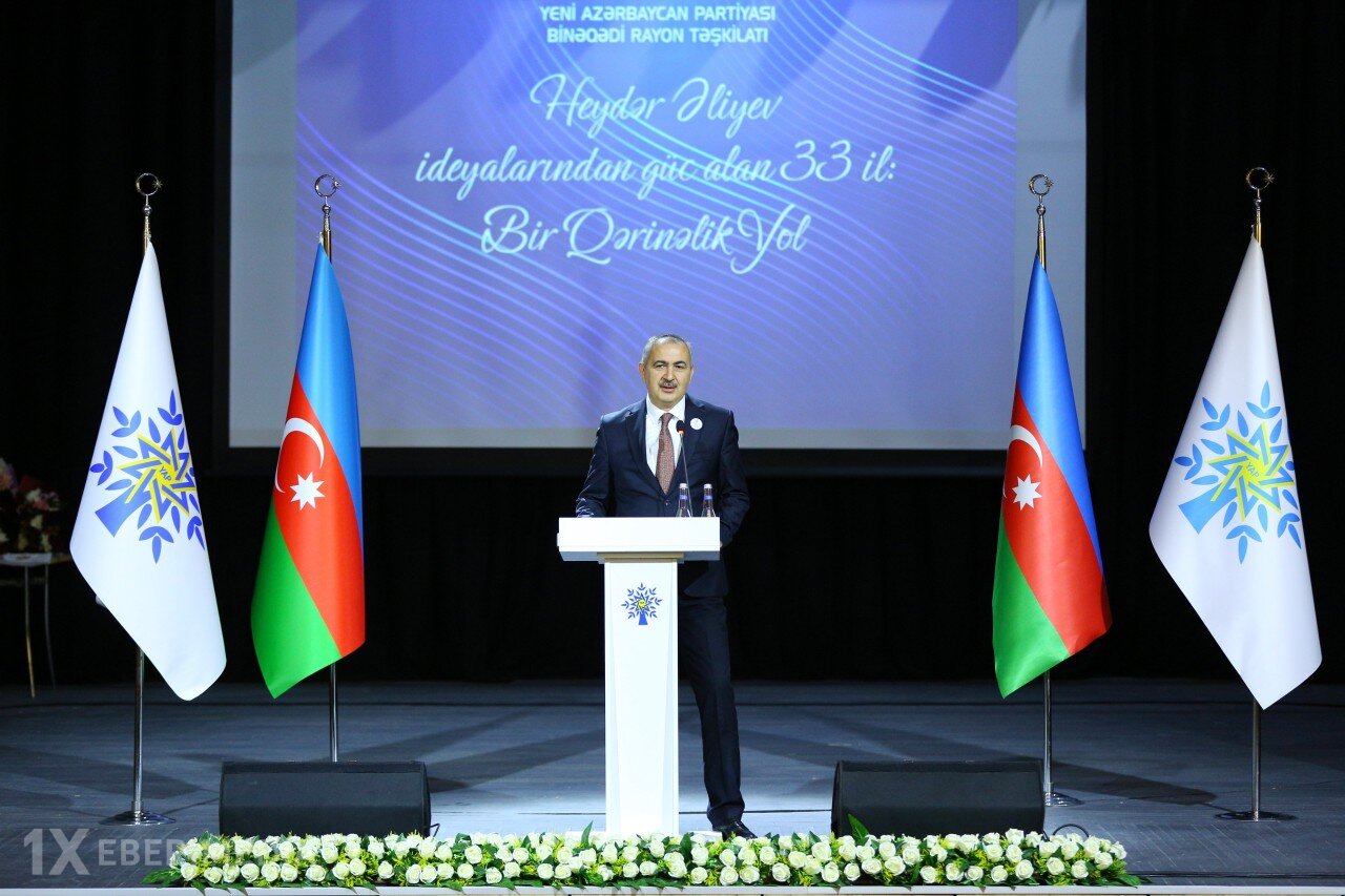 Yeni Azərbaycan Partiyasının Mərkəzi Aparatının şöbə müdirinin müavini Rafael Gülməmmədov çıxışında Yeni Azərbaycan Partiyasının təsis olunmasından, həmçinin Ümummilli Lider Heydər Əliyevin iştirakı ilə Naxçıvanda keçirilən partiyanın ilk iclaslarından bəhs edib. O, Ümummilli Lider Heydər Əliyevin siyasi strategiyası və Prezident İlham Əliyevin uzaqgörən siyasəti nəticəsində bu gün ölkəmizin çoxsaylı uğurlar qazanmasında Yeni Azərbaycan Partiyasının da əvəzsiz rolu olduğunu söyləyib. Bu gün ölkəmizin dünyada söz sahibi bir ölkə olduğunu, bütün sahələr üzrə dinamik və məqsədyönlü uğurlara imza atdığını qeyd edərək bütün bunları iqtidar-xalq birliyinin, həmrəyliyinin məntiqi nəticəsi adlandırıb.