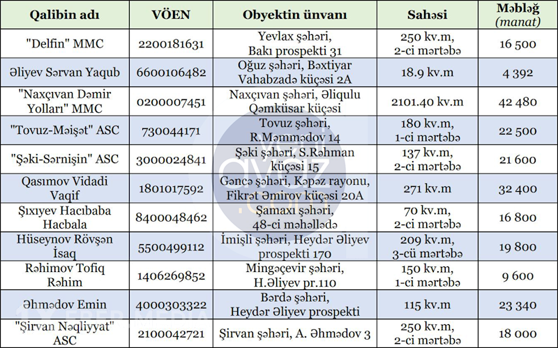 AYNA-nın icarəyə götürdüyü obyektlər bunlar olub: