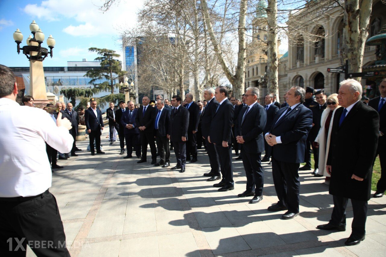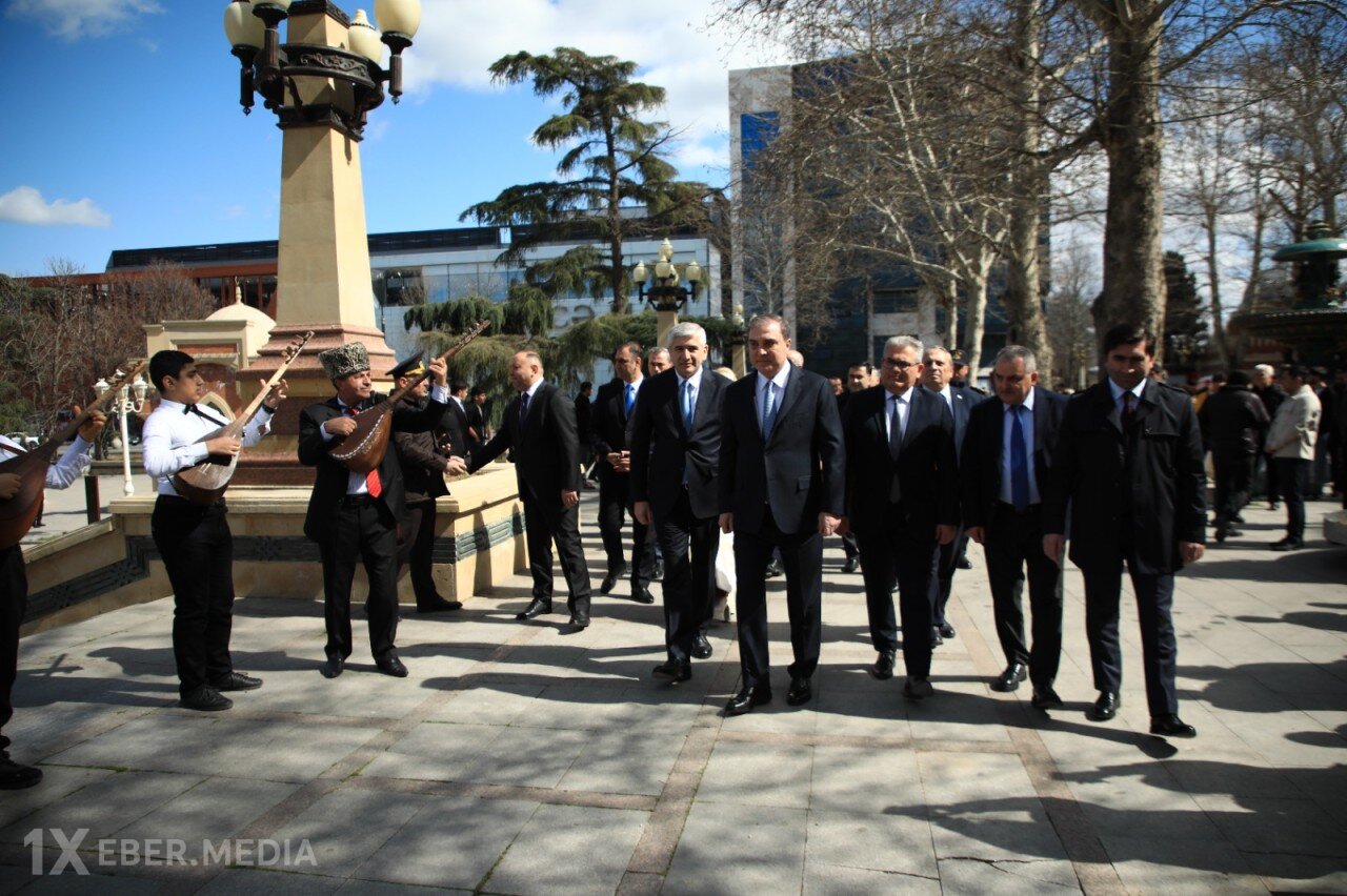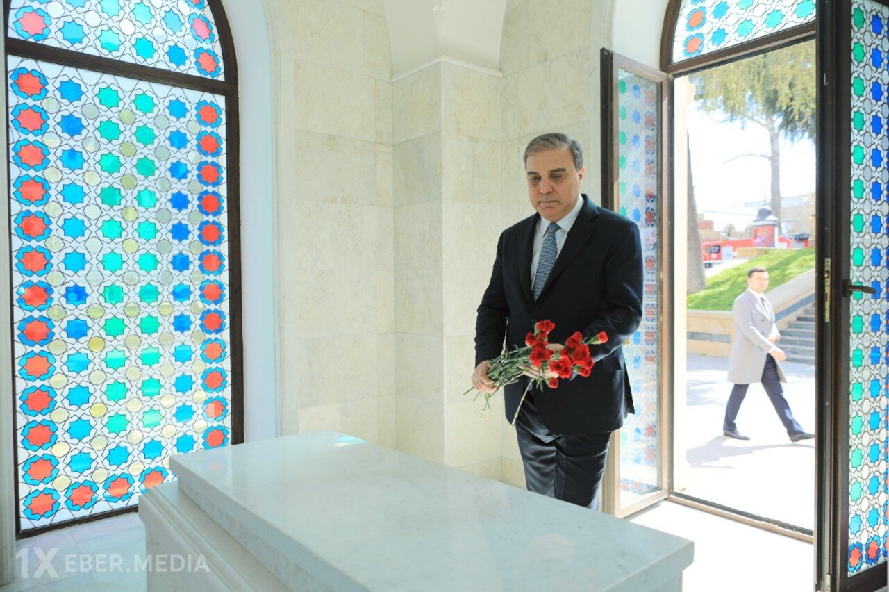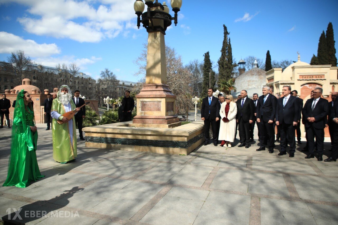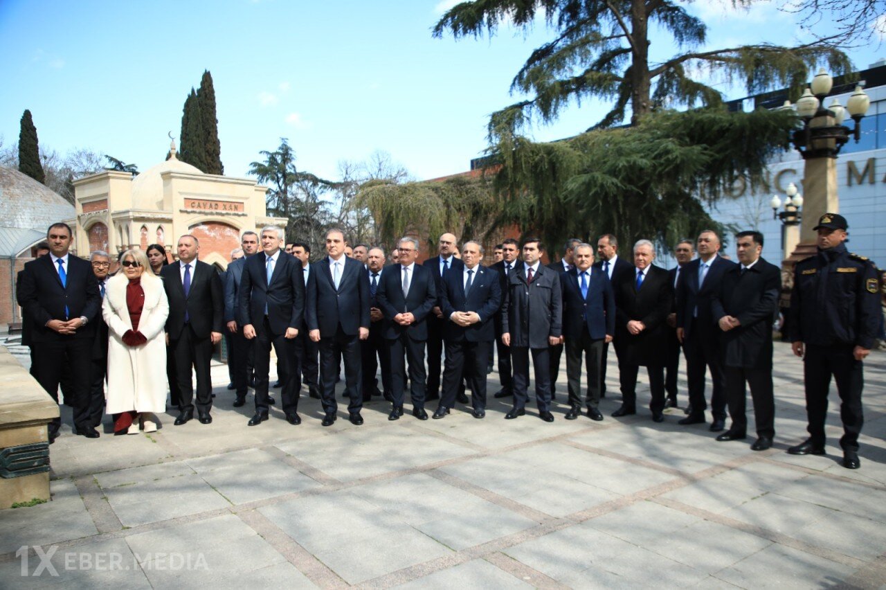 Əvvəlcə rəsmilər Filarmoniyanın önündə yerləşən Gəncənin sonuncu xanı Cavad xanın məqbərəsini ziyarət edərək məzarı önünə gül dəstələri düzüblər.