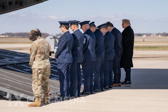 1xeber.media xəbər verir ki,ABŞ prezidenti Donald Tramp xidməti vəzifəsini yerinə yetirərkən yanacaqdolduran təyyarənin qəzaya uğraması nəticəsində həlak olan altı hərbçinin nəşinin təntənəli təhvil verilməsi mərasimində iştirak edib.