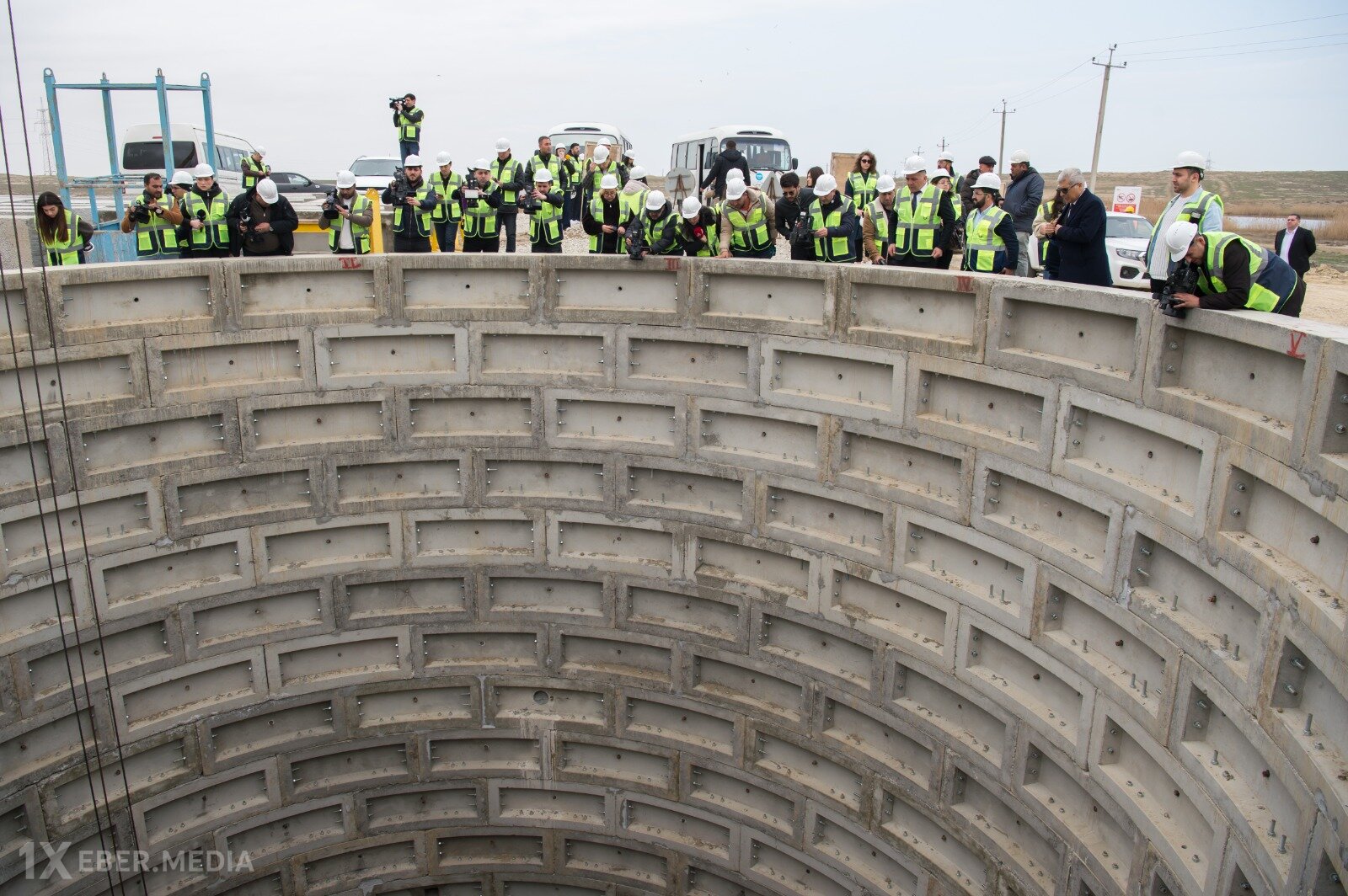 Media nümayəndələri Müşfiqabad hövzəsi üzrə gətirici kanalizasiya kollektorunun, şaxtaların, tullantı sular üçün sutəmizləyici qurğunun tikinti prosesi ilə yaxından tanış olub və mütəxəssislər onlara ətraflı məlumat veriblər.