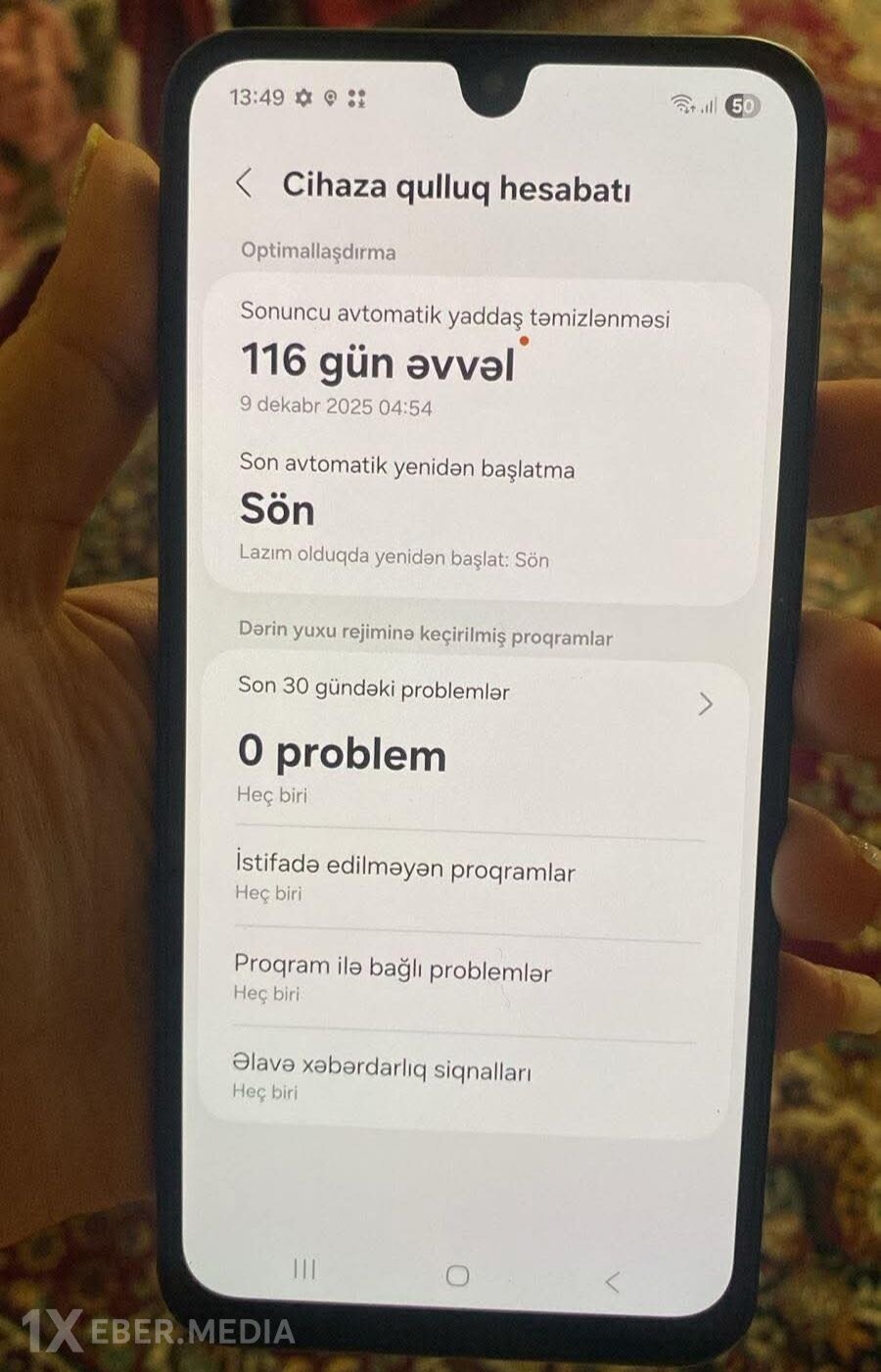 Onun sözlərinə görə, cihazı aktiv edərkən son avtomatik yaddaş təmizlənməsinin 116 gün əvvəl – 9 dekabr 2025-ci ildə həyata keçirildiyi barədə bildiriş görünüb: