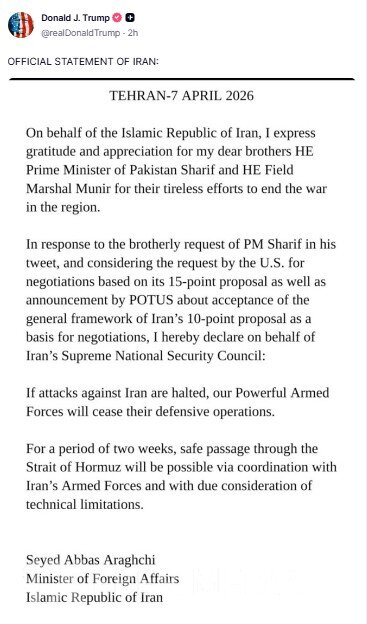 ABŞ Prezidenti Donald Trampın iki həftəlik atəşkəsə razılaşmaq qərarını açıqlamasından sonra maraqlı hadisə yaşanıb.