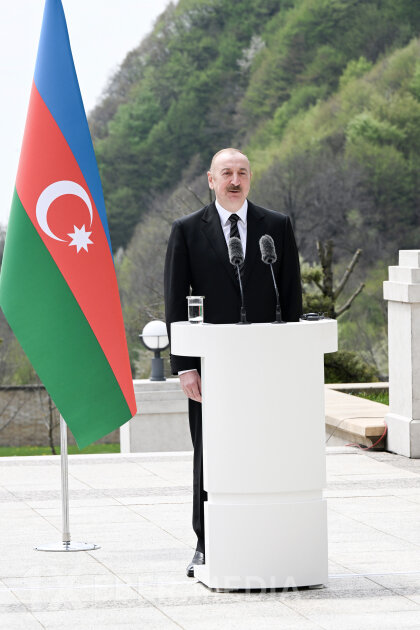 Əvvəlcə Azərbaycan Prezidenti bəyanatla çıxış edib.