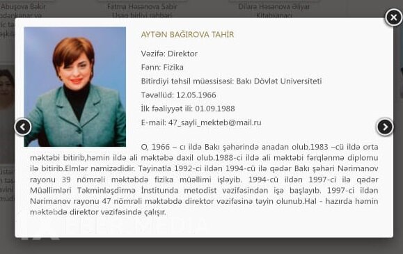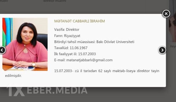 Çox maraqlıdır ki, 29 ildir direktor işləyən Aytən Bağırova ilə bağlı internet resurslarında- açıq mənbələrdə fəaliyyətini əks etdirən ciddi informasiyalara rast gəlmək mümkün deyil. 62 saylı məktəb-liseyin direktoru Mətanət Cabbarlı haqqında isə açıq internet resurslarında son dərəcə neqativ xəbərlərin dərc olunması diqqət çəkməkdədir.
