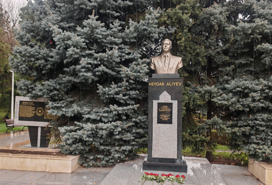 1xeber.media xəbər verir ki,tədbirdə Ümummilli Liderin əziz xatirəsi ehtiramla yad olunub, büstün önünə gül dəstələri düzülüb.