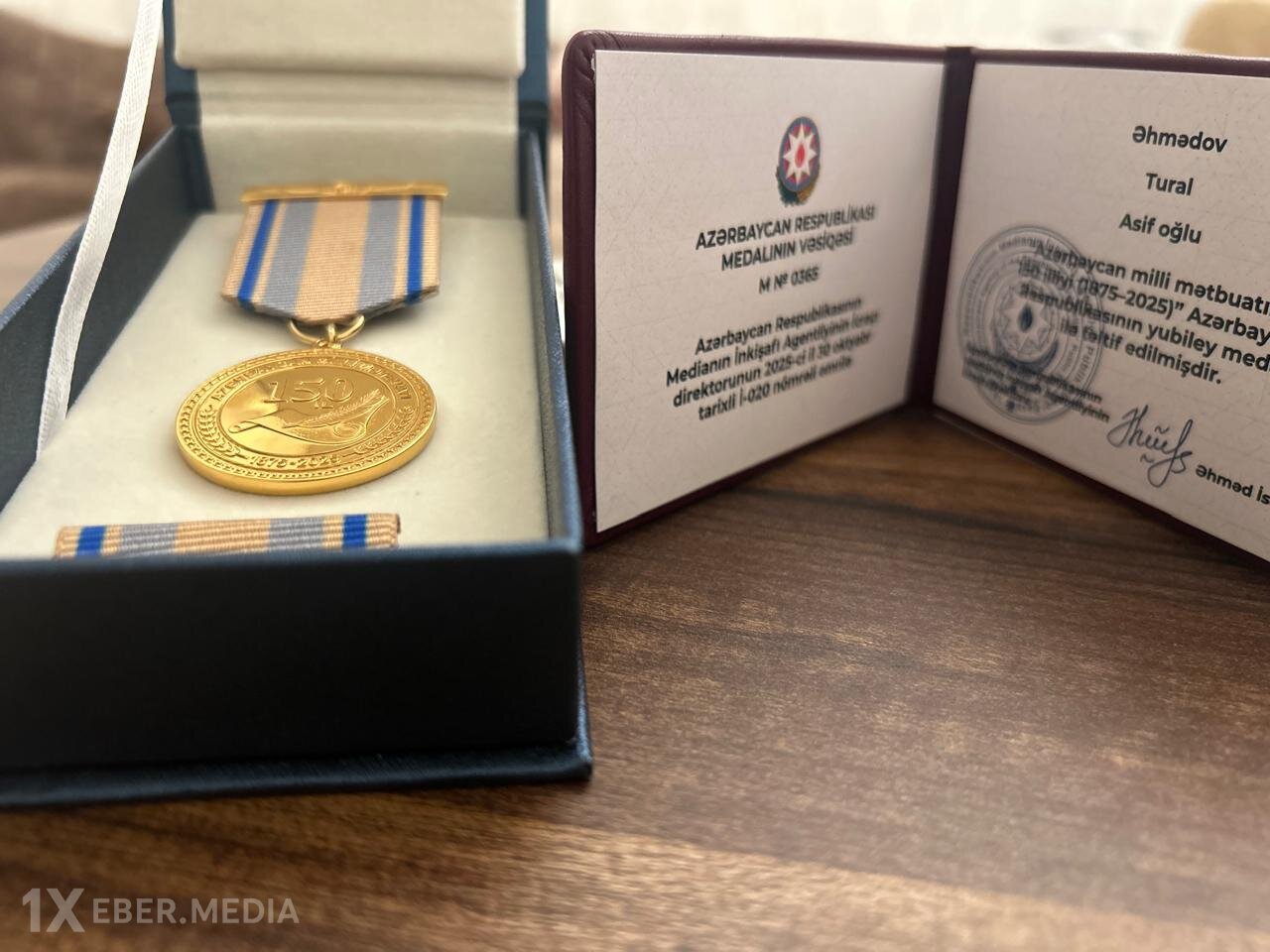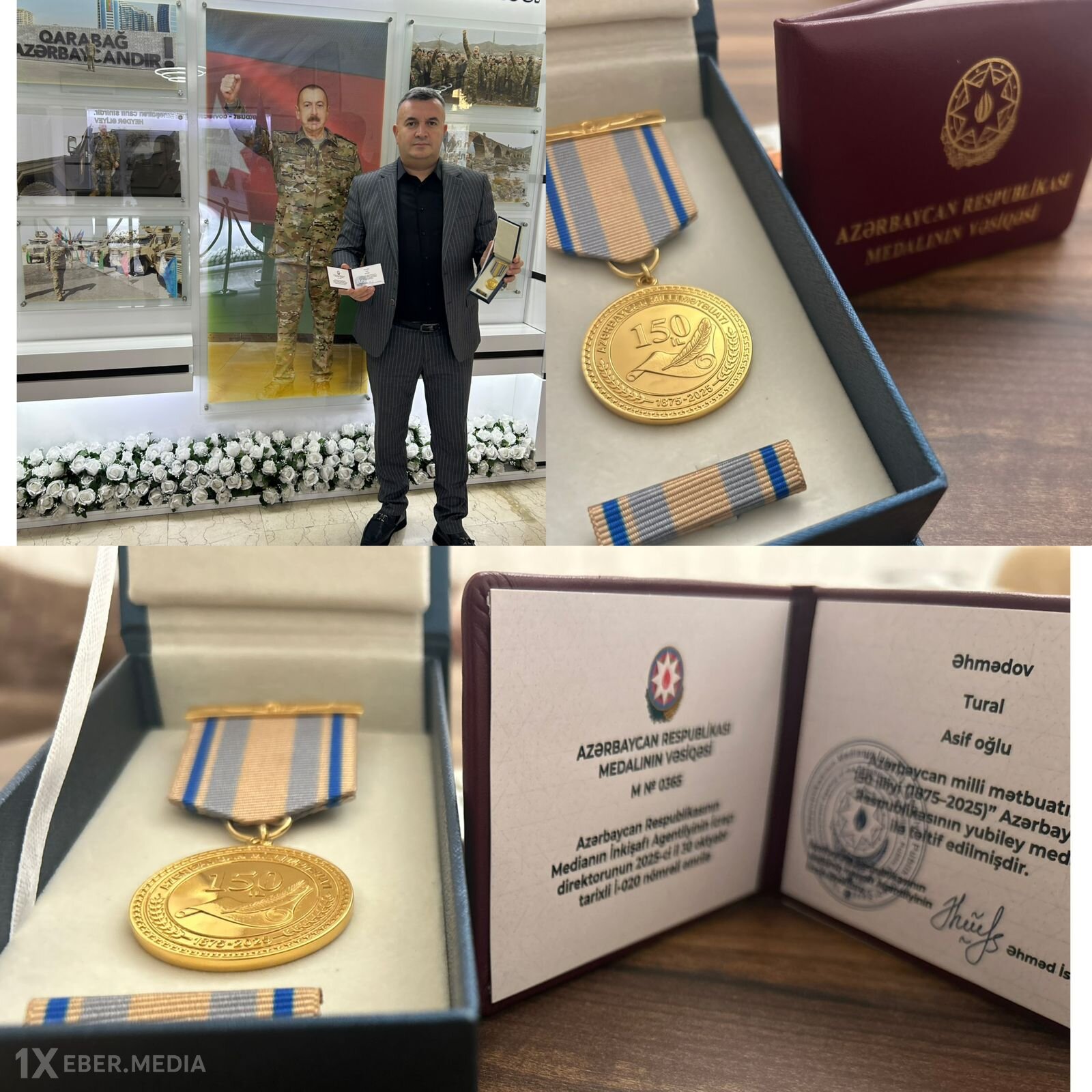 1xeber.media-nın rəhbəri Tural Əhmədov Azərbaycan Respublikasının Prezidenti cənab İlham Əliyevin müvafiq Fərmanı ilə təsis edilmiş “Azərbaycan milli mətbuatının 150 illiyi (1875–2025)” yubiley medalı ilə təltif edilib.